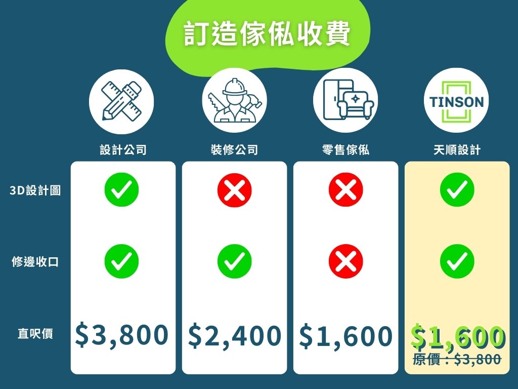 點解搵天順設計工作室?我們會主動了解你生活既需求提供最合適你既方案,更首創【透明式收費】,令你可計算成本以免失咗預算,同時採用極低甲醛無臭味的ENF 11層實木芯板,也合約訂明交貨期, 完工後即可安心拎包入住,輕輕鬆鬆升級你既生活空間。