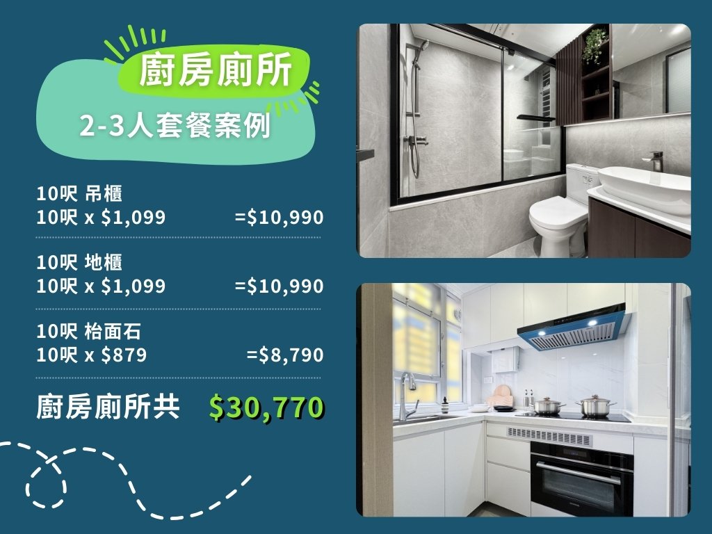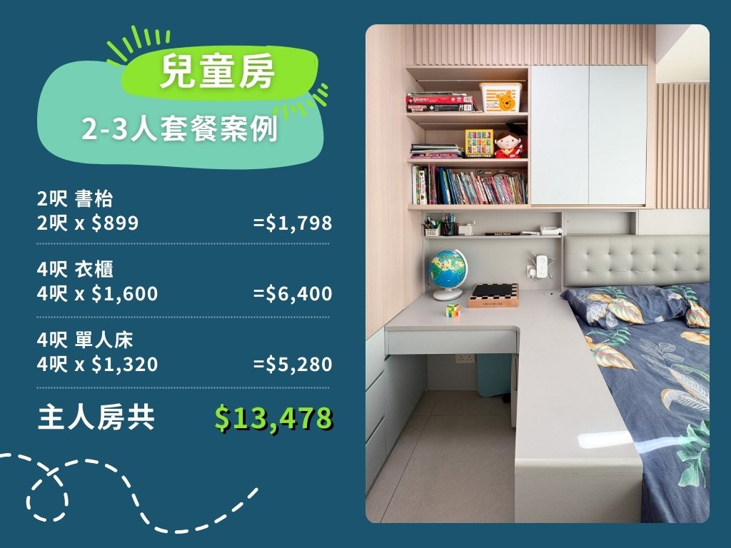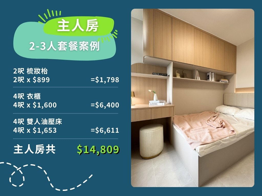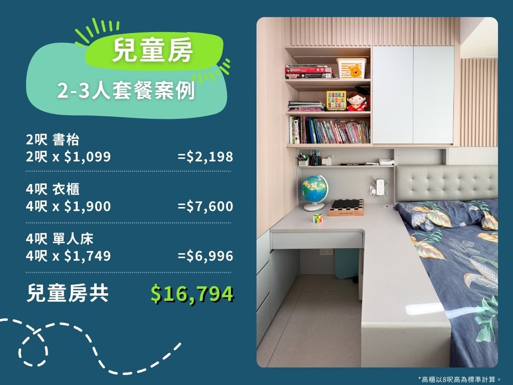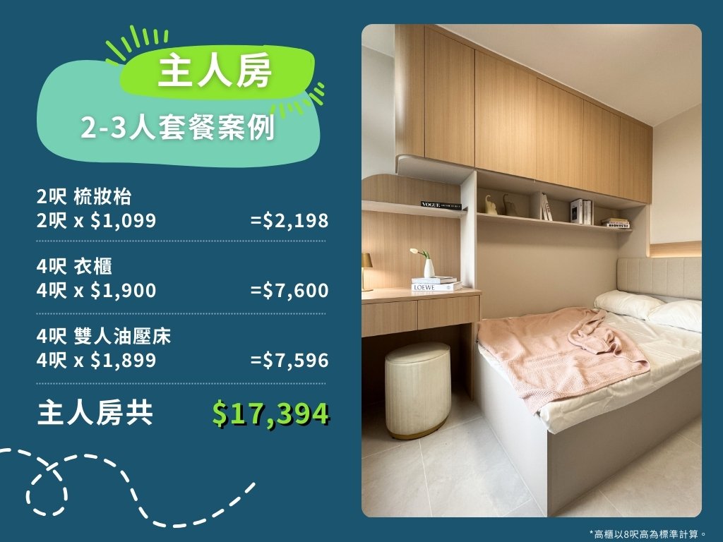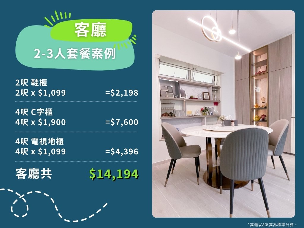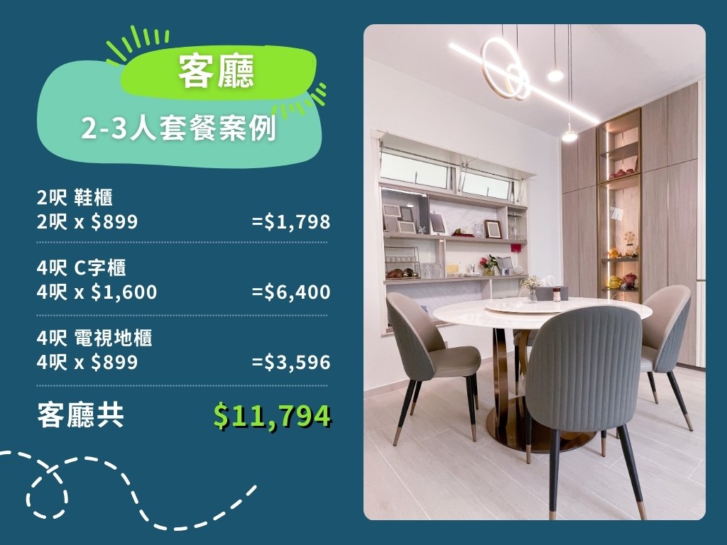 以下是訂造全屋傢俬2-3人套餐案例之收費計算方法
