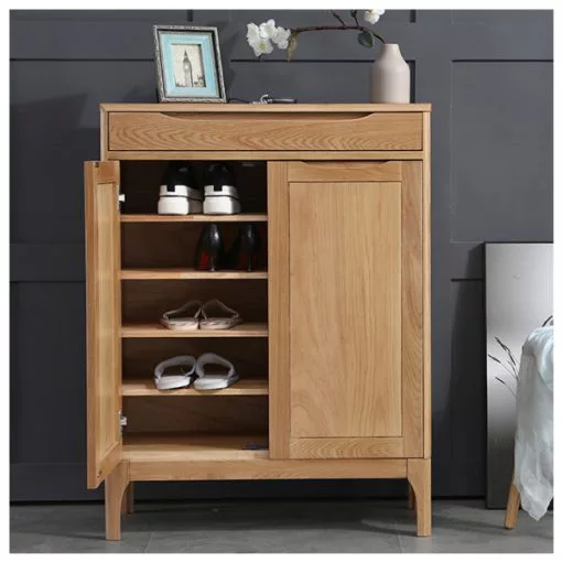 鞋櫃每層最多能放3對鞋。抽屜式設計,能增加存放空間,有效地整理物品。採用實木製造,堅實而耐用。天然物料,環保自然,承重力強。